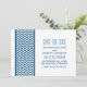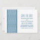 Chic and modern Chevron Border Save the Date Announcement featuring a simple chevron pattern border in dark blue and white. This stylish design will set the tone for an elegant wedding. Easy to customise, simply add your wedding details in the text fields provided. Click "Customise It" to find more personalisation options.