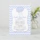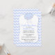 Stylish couple's baby shower invitation done in a light blue and white chevron pattern background. A decorative blue edged white text area, has graphics of a cute kawaii style cloud with rain, at the top. Personalise the text for your baby shower. Sweet invitation the parents-to-be will cherish.