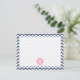 Flat notecard featuring a blue ikat chevron design. Personalise with your monogram over pink quatrefoil design.