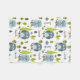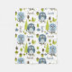 A fleece blanket featuring a pattern with illustrations of blue owls with chevron stomachs, trees, leaves, and acorns. Personalise the name.
