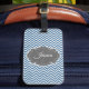 Tag your luggage when you travel with a Blue Chevron Personalised Luggage Tag. Luggage tag design features a blue chevron background and an ornate grey tag to personalise with your name and monogram. Additional items available with this design as well. Please contact me directly for assistance with personalisation.