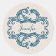 Elegant and sophisticated Chic Damask Stickers featuring a soft beige background and a stylish damask flourish embellishment in dark blue. This modern design is easy to customise with your own text. Click "Customise It" to find more personalisation options.