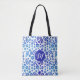 Blue China Hand Drawn Floral Pattern & Monogram Tote Bag