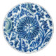 This is a beautiful exquisite ornate classic blue watercolor Chinese floral ornament on a white background.