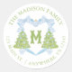 Blue Chinoiserie Christmas Tree Monogram Crest Classic Round Sticker