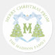 Blue Chinoiserie Christmas Tree Monogram Crest Classic Round Sticker