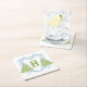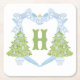 Blue Chinoiserie Christmas Tree Monogram Crest Square Paper Coaster