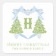Blue Chinoiserie Christmas Tree Monogram Crest Square Sticker