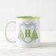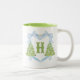 Blue Chinoiserie Christmas Tree Monogram Crest Two-Tone Coffee Mug