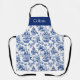 This blue chinoiserie monogram name apron features elegant floral vases in classic blue and white with a bold centered name in a trending font. Perfect for home styling, this chinoiserie monogram design adds timeless charm and personalized sophistication.