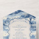 Blue Chinoiserie Porcelain Botanical Peony Wedding All In One Invitation