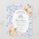 It’s time for tea with mum-to-be! Elevate your next baby shower with this delicate bouquet of light blue chinoiserie florals. This whimsical floral theme is inspired by the charm of an English garden, featuring a pastel toile pattern with zesty lemons and soft pink flowers.
