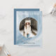 This classic simple graduation invitation works for both college or high school graduates. It features a blue watercolor swash background and your graduates name and school on the front with a small cross and your students photograph and the bible verse Proverbs 16:3 Commit to the Lord whatever you do, and he will establish your plans. The back side has a blue background with Let's Celebrate and details about your graduation party.