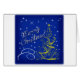 Beautiful blue Christmas tree scene set off by snowflakes. Perfect winter gift.