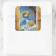 BLUE CHRISTMAS ANGEL MAKING MUSIC OLD PARCHMENT SQUARE STICKER