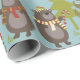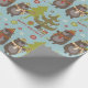 This cute gift wrapping paper is bound to put a smile on your little one's face this holiday season. This design features two adorable Christmas bears against a blue background with Xmas trees and a text that reads Happy Holidays.