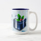 Enjoy your morning coffee during the holiday season with this festive Blue Christmas Gift Coffee Mug. Coffee mug design features a vibrant blue Christmas gift adorned with holly berries and falling snowflakes against an elegant scroll and leaves background with the saying "My cup of cheer". Additional gift and holiday items available with this design as well.
