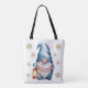 Blue Christmas Gnome with Red Lantern Berries Tote Bag