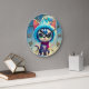 Blue Christmas Kitty Large Clock