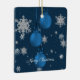 Decorate your tree this holiday season with a Blue Christmas Ornaments Ceramic Ornament. Ornament design features a trio of hanging Christmas ornaments with falling snowflakes and a dark blue background. Additional gift and holiday items available with this design as well.