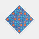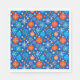 Vibrant blue background filled with various decorative elements associated with winter and festive celebrations. Prominently displayed are colourful ornaments, primarily in shades of orange, blue, and red, adorned with intricate snowflake designs and stripes. Additionally, multiple snowflakes of different shapes and sizes are scattered throughout, along with small circles in contrasting colours, adding to the festive ambiance. The overall effect is playful and cheerful, evoking a sense of holiday spirit.