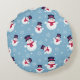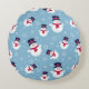 Blue Christmas Pattern With Snowmen And Snowflakes Round Cushion