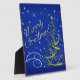 Beautiful blue Christmas tree scene set off by snowflakes. Perfect winter gift.