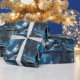 Blue Christmas Santa and Reindeer Wrapping Paper