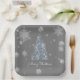 Blue Christmas Tree and Snowflakes Paper Plate