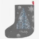 Add a festive touch to your fireplace mantle this holiday season with a Blue Christmas Tree and Snowflakes Stocking. Stocking design features a vibrant artistic Christmas tree with falling snowflakes and a dark grey background with a space you can add your name for personalisation. Additional gift and holiday items available with this design as well.