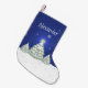 Add a whimsical touch to your mantle this holiday season with a personalised Blue Christmas Tree Christmas Stocking. Stocking design features a trio of decorated Christmas Trees in snow with falling snowflakes against a blue background. Additional gift and holiday items available with this design as well.