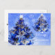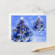 Blue Christmas tree, flower and pines Holiday Postcard