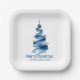 Blue Christmas Tree Watercolour Paper Plate