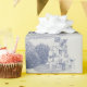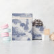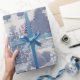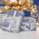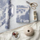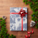 Celebrate Christmas right this year with this gorgeous wrapping paper featuring a toile design with a beautiful Christmas tree in the foreground being discovered by a curious child. A dancing couple, trees, Santa's sleigh, presents, and a reindeer all grace the mid-ground. And, in the background, there's a cosy winter cabin nestled amongst the hills, surrounded by trees.