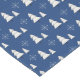 Elegant blue Christmas decorative table runner with white pines and snowflakes