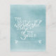 Blue Christmas with Quote Postcards. Beautiful holiday themed postcards featuring a snow falling on a light blue background with faded white edges. Typography quote, "It's the most wonderful time of the year". See more at our store, Quote Life. Link below: