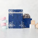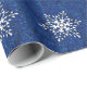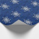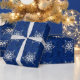 Christmas wrapping paper with white snowflakes on blue glitter background