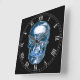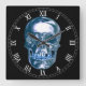 Blue Chrome Skull Square Roman Numerals Clock