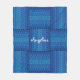 Quilt-inspired arrangement of a circular pattern with loads of different blue colours. Customisable with a name in white that stands out from the blue.