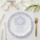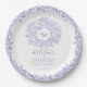 Wedding leaf monogram art wedding paper plates. Simple leaf design circling your own monogram initials in blue purple colour and grey text on a crisp white. Other colours and matching wedding items are available. © Original leaf line art hand drawing and design by Sarah Trett for www.mylittleedenweddings.com on zazzle.
