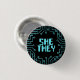 Blue Circuit Board She/They Pronouns 3 Cm Round Badge