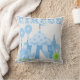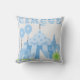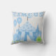Blue Circus Fun pillow features two blue elephants, one in a party hat, a green ball, blue balloons, striped and polka dotted big top, and text that reads "Circus"!