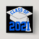 Give this Blue Class of 2024 Grad Cap Button to your favourite grad graduating this year. Personalise it with their class year. This button features a white grad cap on a black background with blue writing. It's perfect for graduates with school spirit.