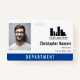 Office employee badge with a clean minimalist design in black, blue, and white. Add a photo of the employee along with name, personal pronouns, and profession. Personalise further with your business logo.