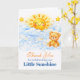 Thank your guests with this sweet little sunshine baby shower design featuring a smiling sun, fluffy blue clouds, glowing stars, and a cuddly teddy bear. The soft watercolor style and cheerful yellow and sky blue tones create a warm and heartfelt feel, perfect for celebrating your special day. This charming design adds a thoughtful finishing touch to a sunshine-themed baby shower and leaves a lasting, joyful impression.