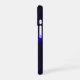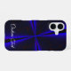This iPhone 16 phone case features a blue color red accented geometric clover leaf theme. The case can be personalized with custom text editing and also features iPhone model case change options. Makes an awesome gift idea.