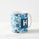 Blue Clover Shamrock Pattern Monogrammed St. Patrick`s Day Mug. St. Patrick's day modern mug with hand-drawn blue shamrock, clover pattern. Add your monogram and name.