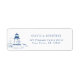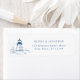 These elegant New England coastal blue wedding return address labels feature a hand drawn toile-style lighthouse.