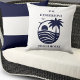 Blue Coastal Palm Tree Family Name Beach House Cushion