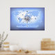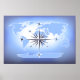 A vector (for high quality printing) graphic illustration of a compass rose on a world map. Original artwork: Copyright Charmaine Paulson